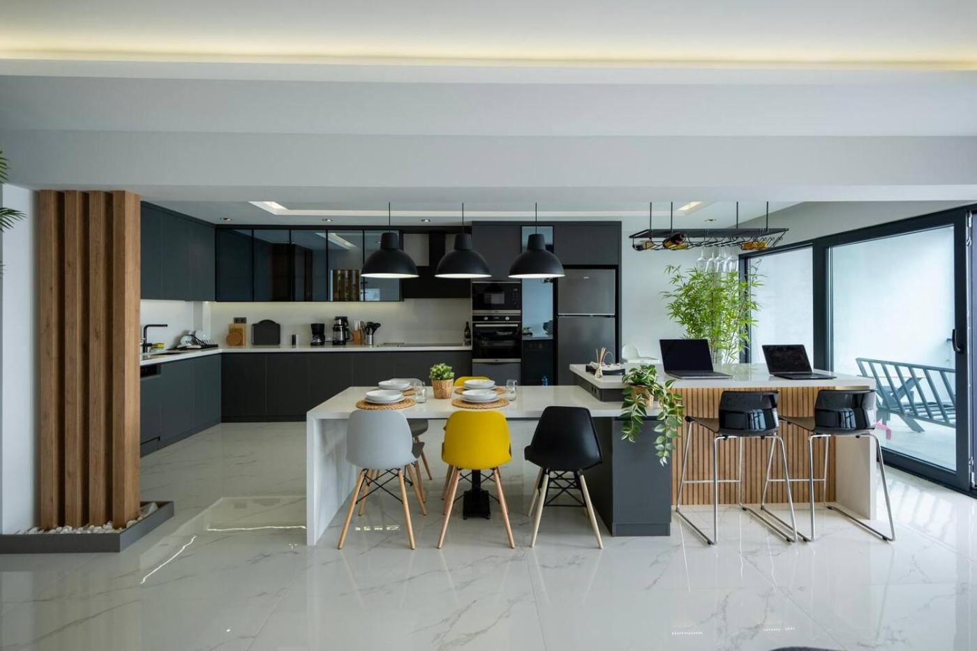 Apartment with View. Featuring a private entrance, this air-conditioned apartment comprises 1 living room, 1 separate bedroom and 2 bathrooms with a shower and a hairdryer. Meals can be prepared in the well-fitted kitchen, which comes with a refrigerator, a dishwasher, kitchenware and an oven. The spacious apartment provides a washing machine, a tea and coffee maker, a seating area, a flat-screen TV with streaming services, as well as sea views. The unit offers 8 beds.