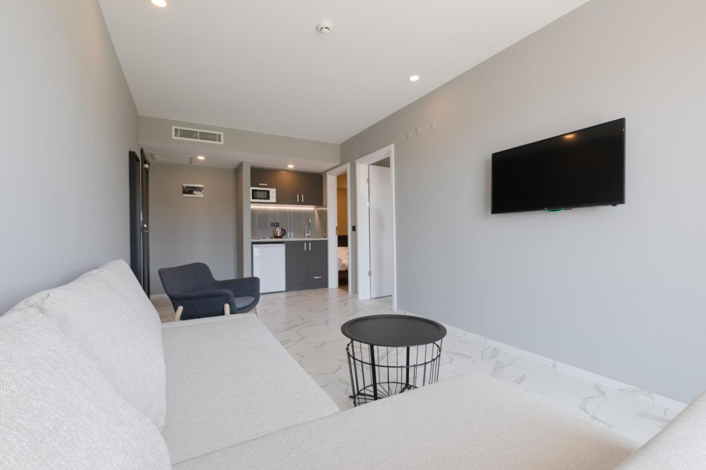 Superior Suite with Sea View. Featuring a private entrance, this air-conditioned suite consists of 1 living room, 1 separate bedroom and 1 bathroom with a walk-in shower and a hairdryer. The well-fitted kitchen features a refrigerator, kitchenware and a microwave. The suite provides soundproof walls, a tea and coffee maker, a seating area, a flat-screen TV with cable channels, as well as sea views. The unit offers 2 beds. ;