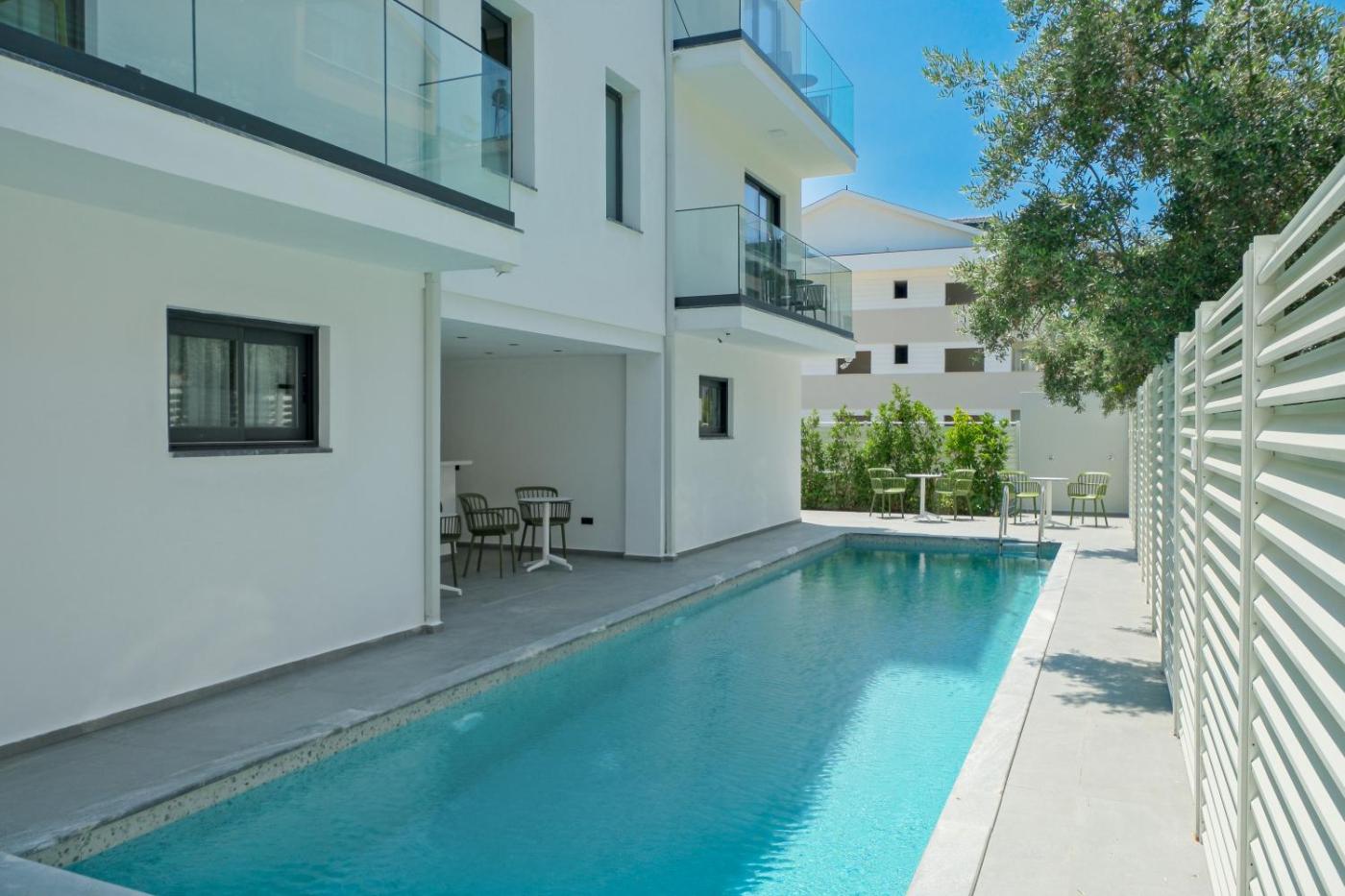 Guests can enjoy the indoor pool at the aparthotel.