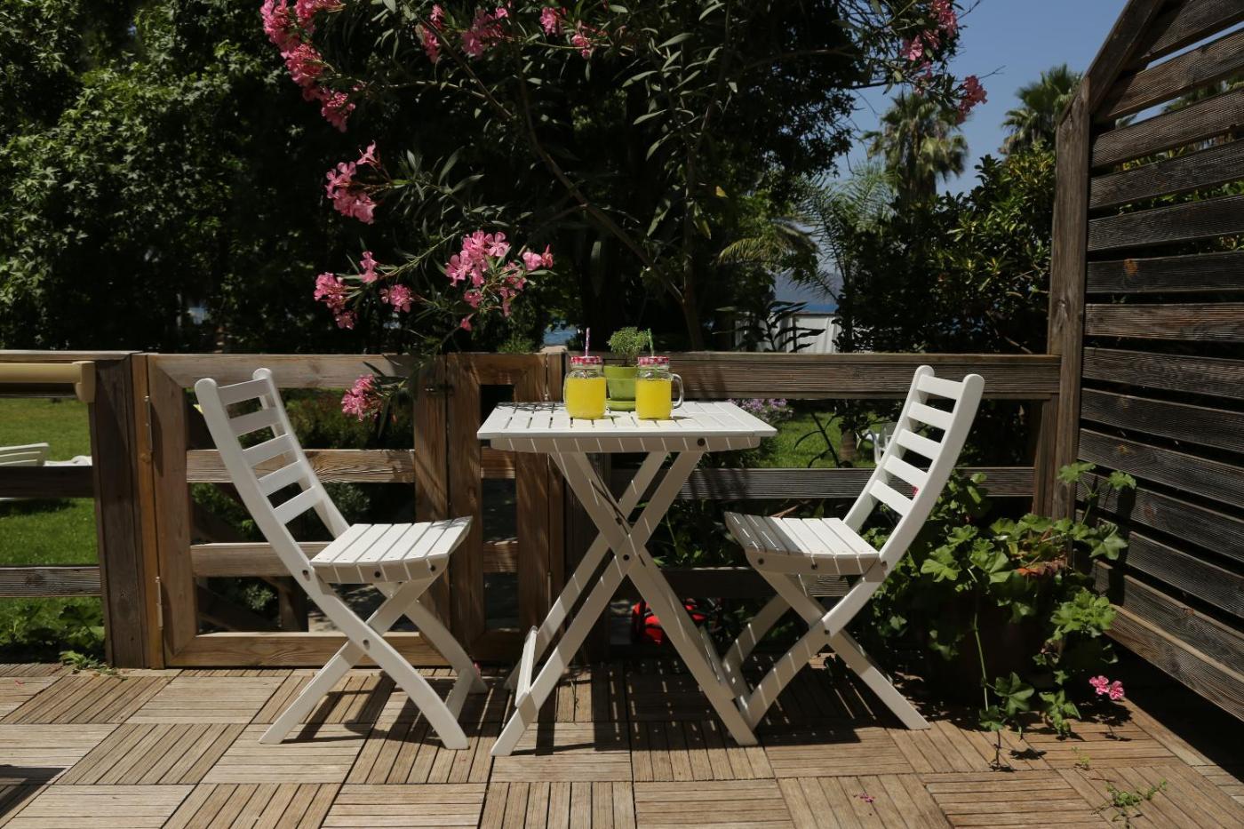 Deluxe Flower Suite. Rustic style rooms with fine wooden furnishings offer 1 double bed or 2 single beds. It includes an LCD TV with satellite channels, seating area and a patio or balcony. ;