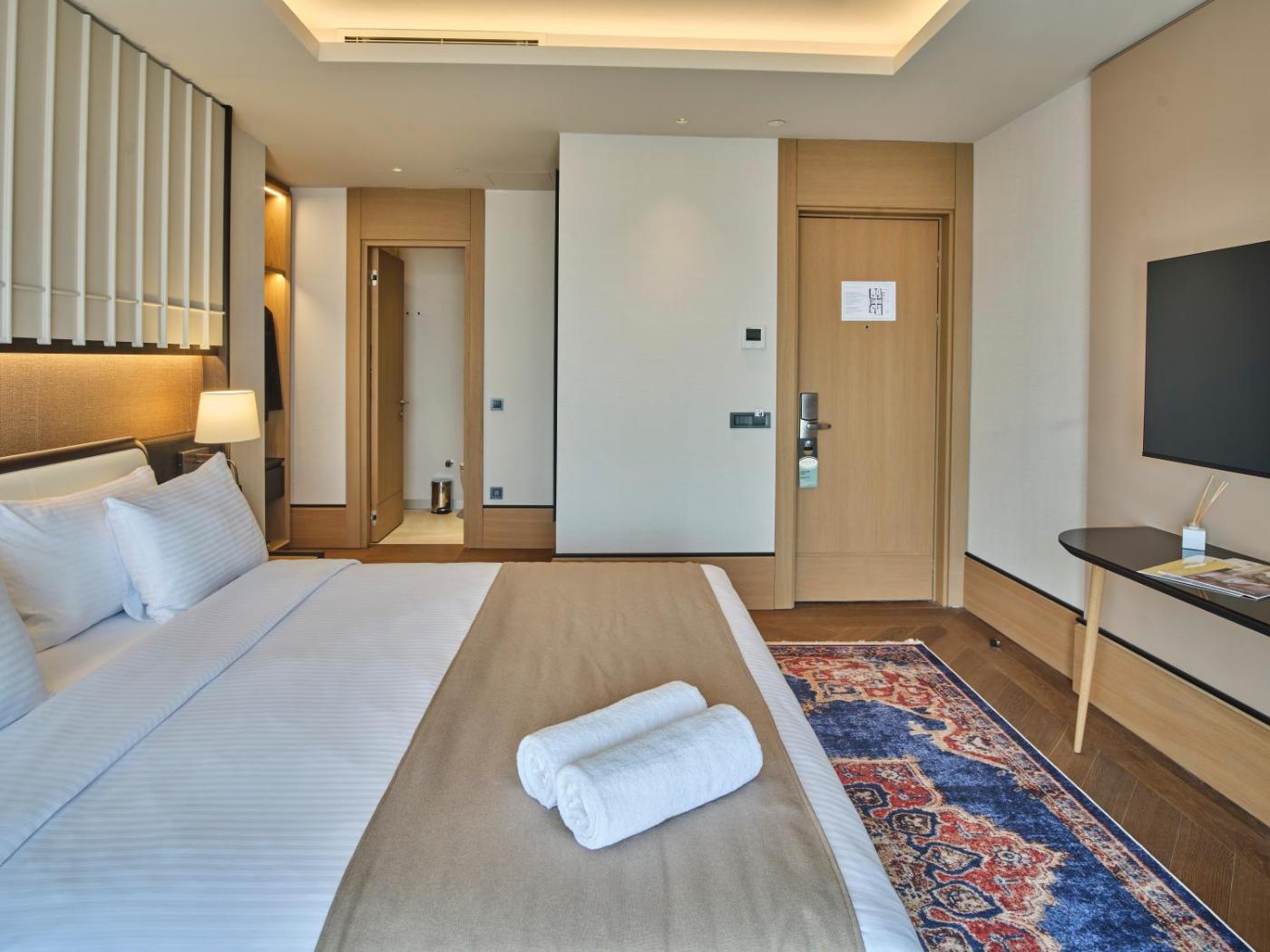 Superior Double Room. The spacious double room provides air conditioning, a minibar, as well as a private bathroom featuring a walk-in shower and a bath. The double room offers a flat-screen TV, a tea and coffee maker, a wardrobe, a safe deposit box as well as city views. The unit offers 1 bed. ;