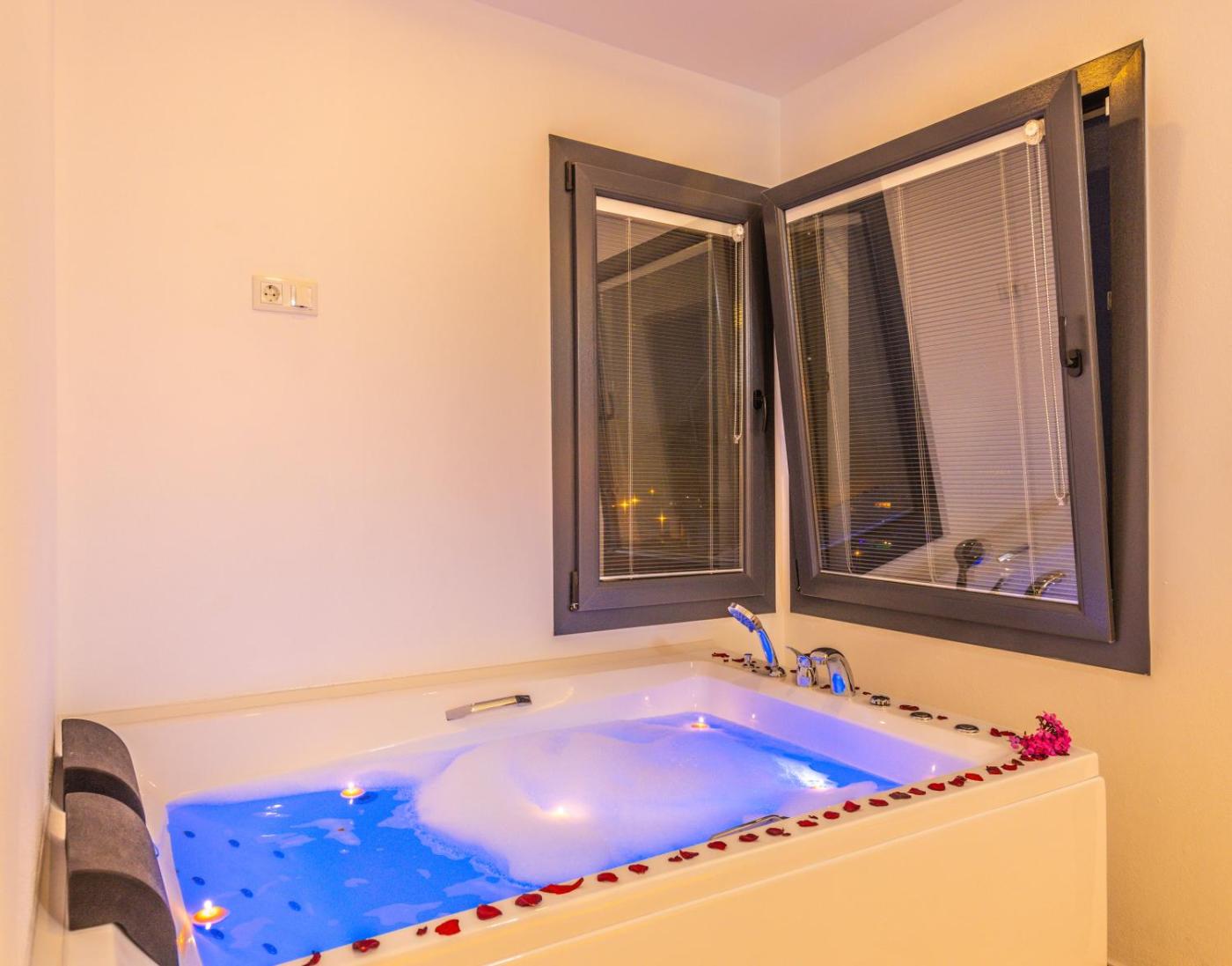 Two-Bedroom Villa. This luxurious villa features a pool with a view, a hot tub and a fireplace. Featuring a private entrance, this air-conditioned villa consists of 1 living room, 2 separate bedrooms and 3 bathrooms with a bath and a shower. Guests will find a stovetop, a refrigerator, a dishwasher and kitchenware in the well-fitted kitchen. The villa also offers a barbecue. Boasting a terrace with sea views, this villa also provides a washing machine and a flat-screen TV with cable channels. The unit offers 4 beds.