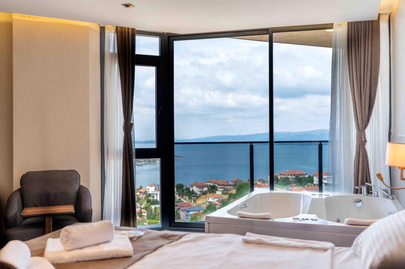 King Room with Lake View. The spacious double room offers air conditioning, a wardrobe, as well as a private bathroom boasting a shower and a hairdryer. Featuring a balcony, this double room also provides an electric kettle, heating and a flat-screen TV. The unit has 2 beds. ;